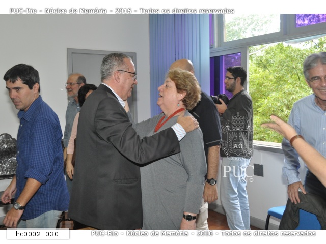 Professores, funcionários e o reitor na cerimônia de posse do prof. Marco Antonio Villela Pamplona como diretor do Departamento de História. |