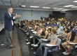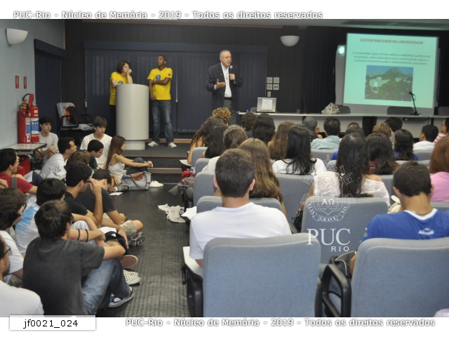Apresentação pelo Reitor pe. Josafá S.J. da palestra O diferencial da PUC-Rio - Vestibular e ENEM, para alunos pré-vestibulandos visitantes. |