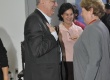 A funcionária Anair Oliveira cumprimenta o reitor pe. Josafá S.J. após a cerimônia. |