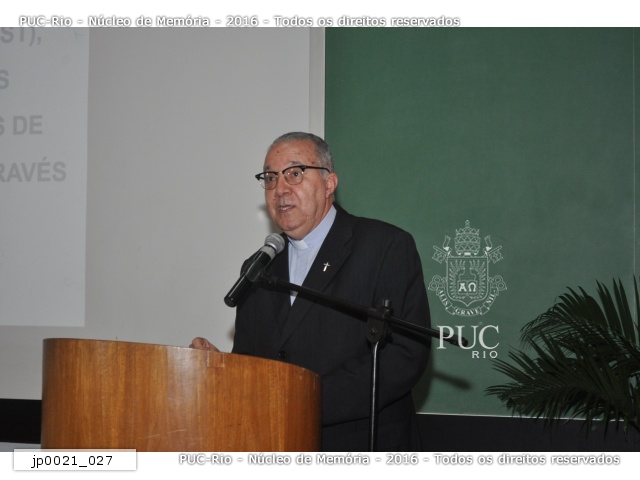 Reitor Padre Josafá S.J. durante apresentação no evento. |