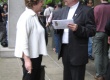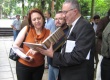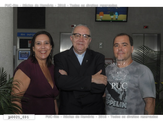 O Reitor Prof. Pe. Josafá S.J. com a professora Lilian Saback e o professor Carlos Alves do Departamento de Comunicação da PUC-Rio. |