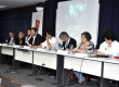 Mesa e a plateia no auditório durante a Aula Magna. |