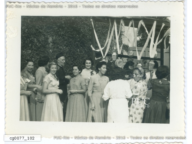 Chá oferecido pelo Reitor nas obras do ed. Cardeal Leme, provavelmente às patronesses das campanhas financeiras da PUC-Rio. |