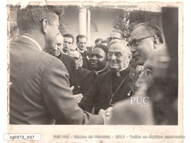 Presidente Kennedy e Pe.Cullen, em encontro com diversos religiosos na Casa Branca. |