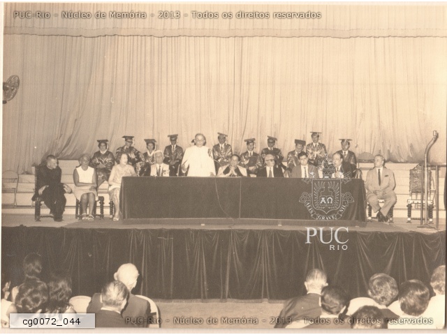 Missa do Espírito Santo e aula inaugural realizada em 07/03/1970 na Ala Frings com a presença do reitor pe. Ormindo Sodré Viveiros de Castro S.J., autoridades, professores e alunos. |