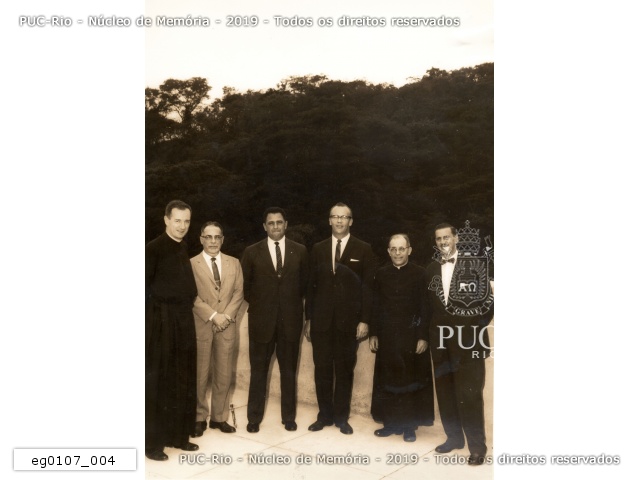Pe. Cullen S.J. e Pe. Roser S.J. com grupo de representantes da empresa Gillete que vieram fazer uma doação para a construção do prédio da Física. |