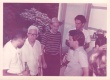 Grupo de pessoas na sala do Depto.de Física. Padre Thomas Lynch Cullen S.J., vestido de carioca, festeja o recebimento do título de Carioca Honorário oferecido pelo jornal O Globo. |