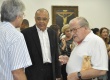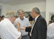 Convidado cumprimenta o Reitor Pe. Josafá S.J. na mesa de autógrafos. |
