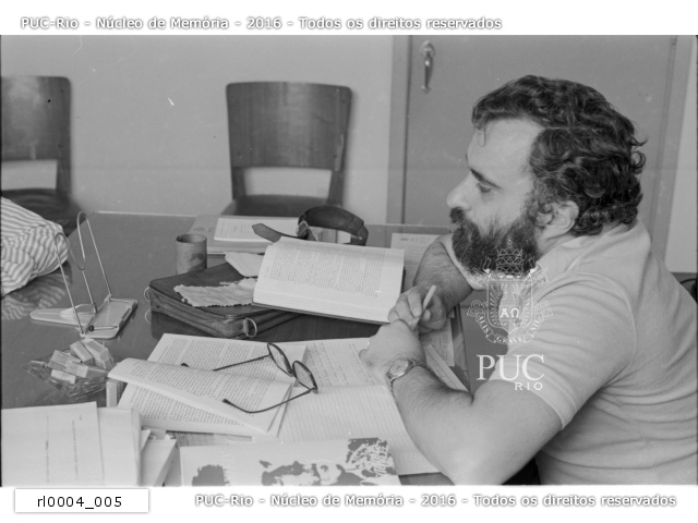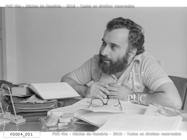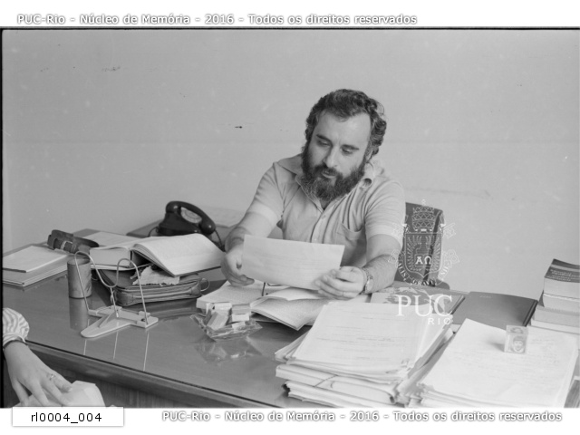 Diretor do Departamento de Filosofia da PUC-Rio em sua sala. |