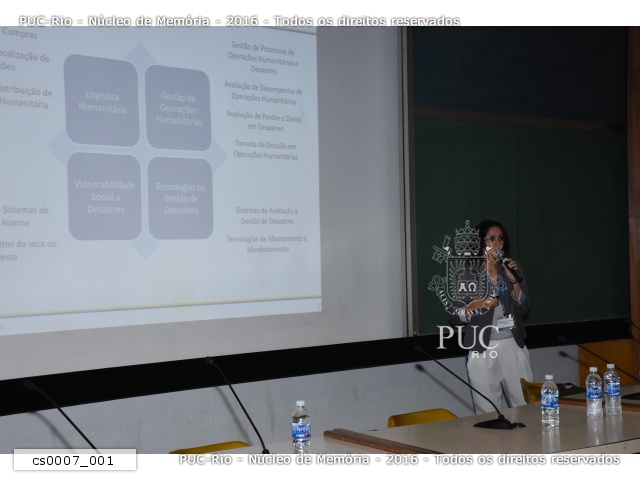 A professora Adriana Leiras apresenta os parceiros do Instituto HANDs – Humanitarian Assistance and Needs for Disasters, um dos laboratórios do Departamento de Engenharia Industrial da PUC-Rio. |