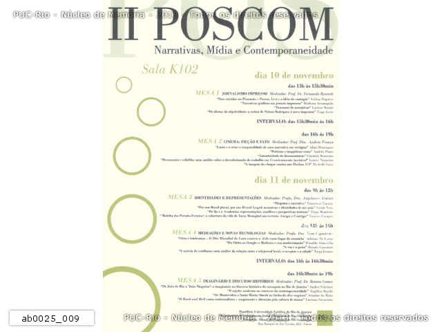 Coleção de folders do Programa de Pós-Graduação em Comunicação Social da PUC-Rio. - ab0025_009 |