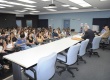 Mesa e plateia da aula inaugural de Relações Internacionais. |