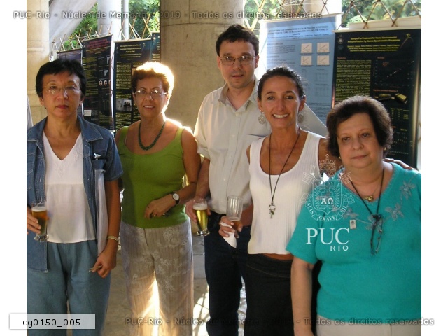 cg0150_005 | 2010 circa | Professores do Departamento de Química (Whei Oh Lin, Isabel Maria Neto da Silva Moreira, Ricardo Queiroz Aucélio, Roberta Lourenço Ziolli e Judith Felcman) em exposição de pôsteres. Fonte: facebook do Departamento de Química. |