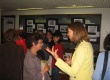 Professores e funcionários veem as fotos do acervo do Núcleo de Memória no telão, enquanto outros identificam as colocadas nos painéis. |