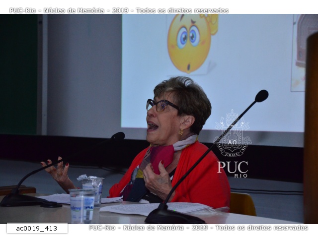 A pedagoga e psicóloca Apparecida Mamede, professora emérita da PUC-Rio e pesquisadora sênior do CNPQ, na aula inaugural do Departamento de Educação. |