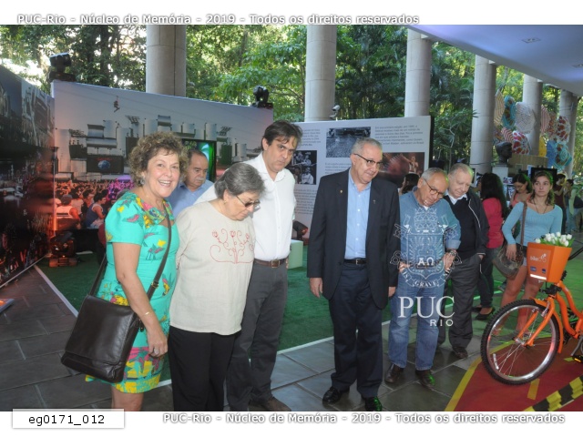 A profa. Cristina Bravo, o prof. Augusto Sampaio e o reitor prof. pe. Josafá S.J. em visita à exposição. |