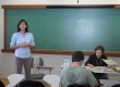 Professor Grumbrecht durante a aula e a plateia do curso. |