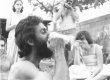 Grupo de pessoas numa festa, provavelmente, no bosque. |