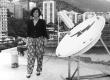 Profa. Marlene Sabino Pontes, então diretora do CETUC, ao lado de uma antena parabólica no terraço da Ala Kennedy. |
