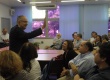 Funcionária parabeniza o Professor Silva Mello. |