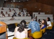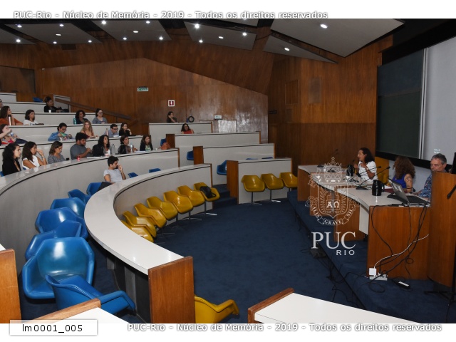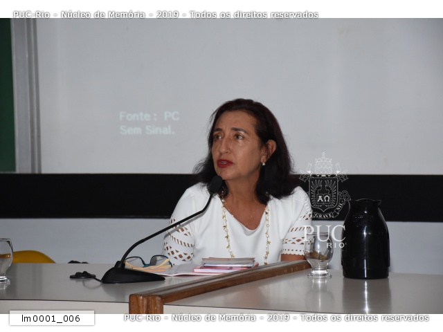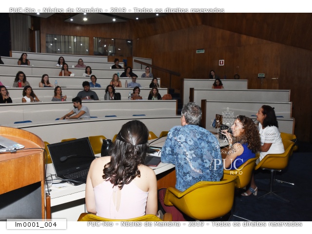 Apresentação da profa. Miriam di Domenico durante o evento e plateia ao fundo. |