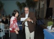 A professora Tereza Cavalcanti recebe o diploma de Honra ao Mérito do Reitor Padre Josafá S.J. em homenagem aos 40 anos de dedicação à PUC-Rio. |