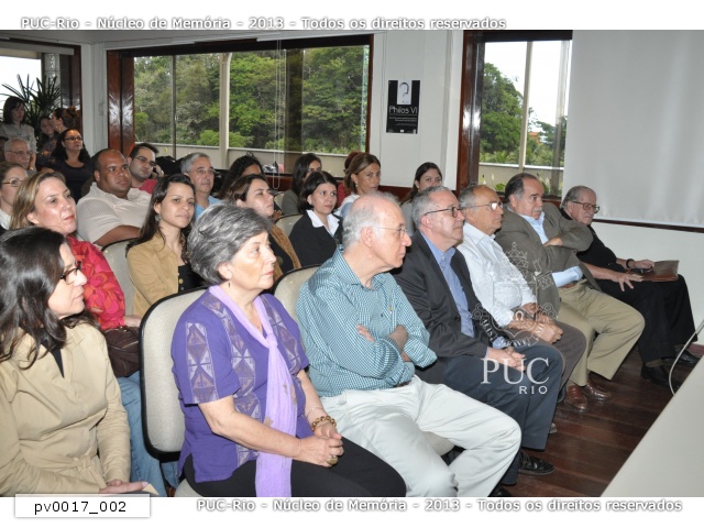 Alguns representantes da administração central, professores e funcionários da PUC-Rio acompanham o evento de lançamento da TV PIXEL, inauguradano ciclo de comemorações do septuagésimo aniversário da Universidade. |