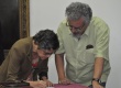 Sérgio Bruni autografa livro. |