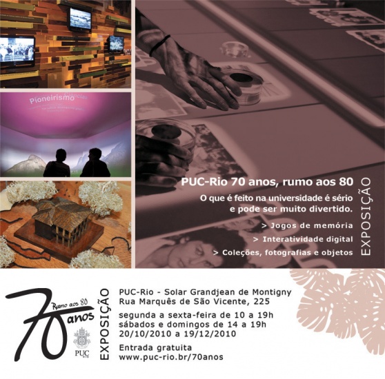 Uma das iniciativas nas comemorações dos 70 anos da PUC-Rio, a Exposição ocupou os dois andares do Solar Grandjean de Montigny. O projeto buscou envolver a comunidade da PUC-Rio, com a curadoria do Núcleo de Memória, design do laboratório Ladeh, do Departamento de Artes e Design, tecnologia do TecGraf, divulgação da Assessoria de Comunicação Social do Projeto Comunicar, apoio em infraestrutura da Prefeitura do Campus, além da colaboração de diversos profissionais listados na apresentação da exposição.