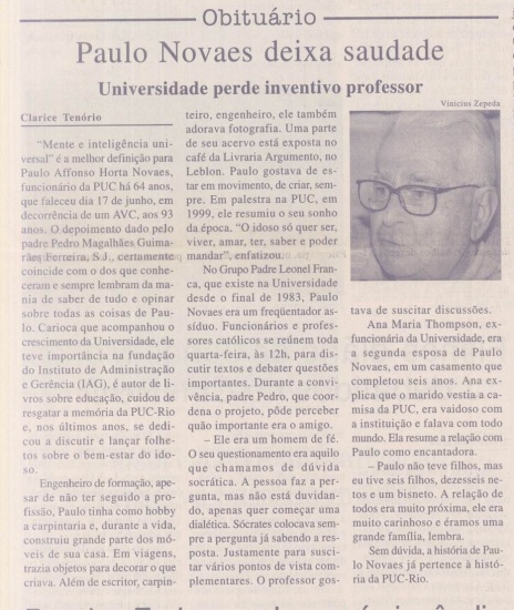 O Pe. Josafá comentou que após pensada e concluída a memória da Pós-Graduação da Universidade poder-se-ia pensar para o futuro em resgatar a memória da Graduação e mais adiante de um Museu da Memória da PUC-Rio.