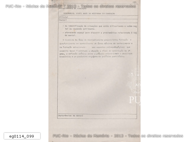 Vinte anos do mestrado em Educação (1966 - 1986) - eg0114_099 |