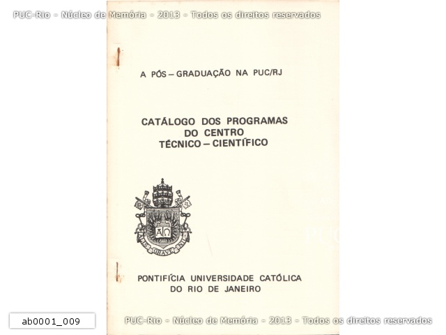 Capa de A Pós-Graduação na PUC/RJ - Catálogo dos Programas do Centro Técnico-Científico. |