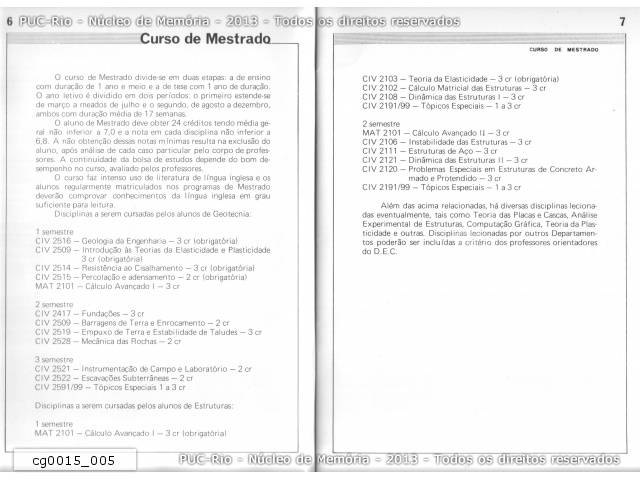 Catálogo Engenharia Civil na PUC-RJ. Disciplinas do Mestrado. |