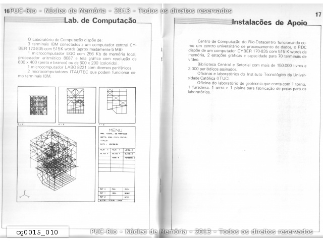 Catálogo Engenharia Civil na PUC-RJ. Laboratório de Computação e Instalações de apoio. Terminais IBM e microcomputadores Itautec, Labo e Ego. |