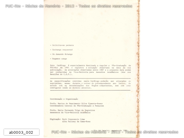 Catálogo Escolar de Pós-Graduação da PUC-Rio - 1987/1991. - ab0003_013 |