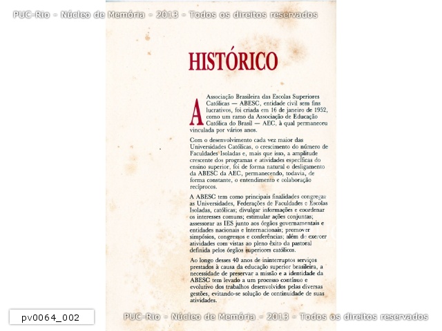Breve histórico da ABESC (Associação Brasileira de Escolas Superiores Católicas). |