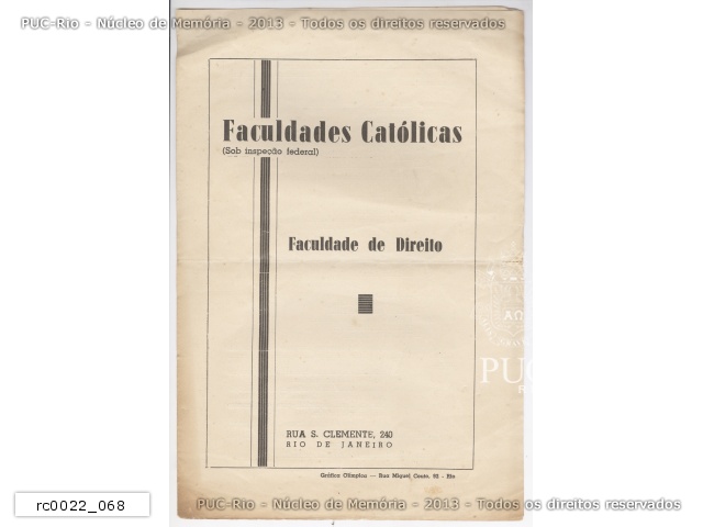 Capa do folheto sobre os cursos da Faculdade de Direito, ainda localizada na rua São Clemente. |