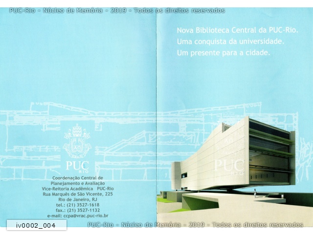 Folder de divulgação do projeto de construção do novo espaço para a Divisão de Bibliotecas e Documentação da PUC-Rio. |