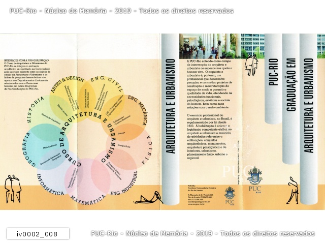 Divulgação do Curso de Graduação em Arquitetura e Urbanismo, então sob a responsabilidade acadêmica dos Departamentos de Artes e Design e de Engenharia Civil. Mandala com as relações (interfaces) com os Programas de Pós-graduação da PUC-Rio. |