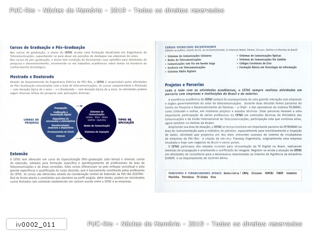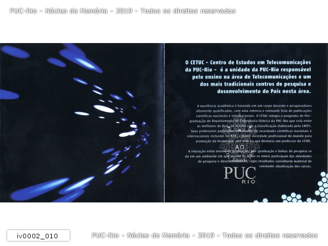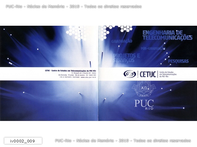 Capa do folheto do divulgação das atividades de ensino e pesquisa do Centro de Estudos em Telecomunicações da PUC-Rio (CETUC). |