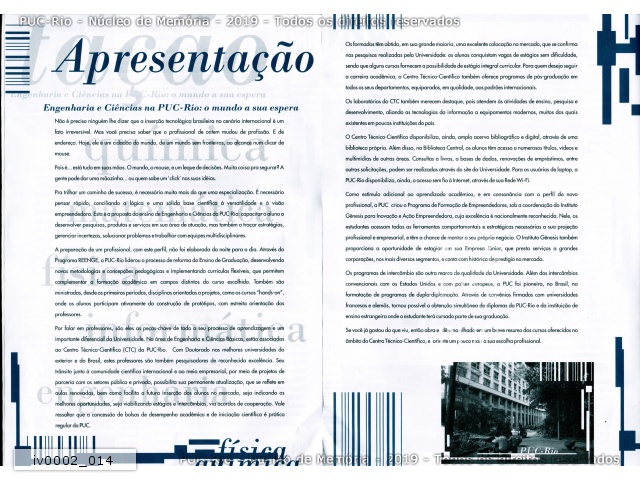 Apresentação da Engenharia e das Ciências na PUC-Rio. |