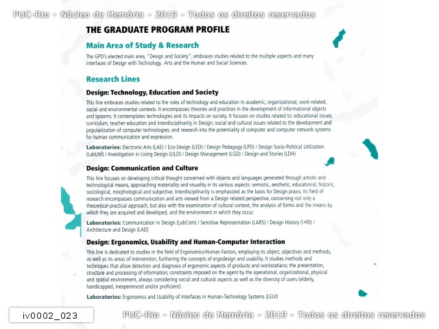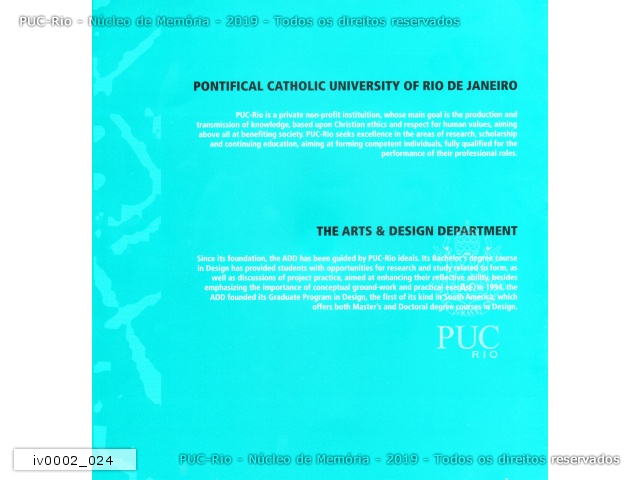 Apresentação, em inglês, do Departamento de Artes e Design. |