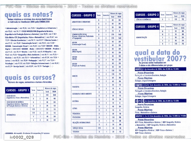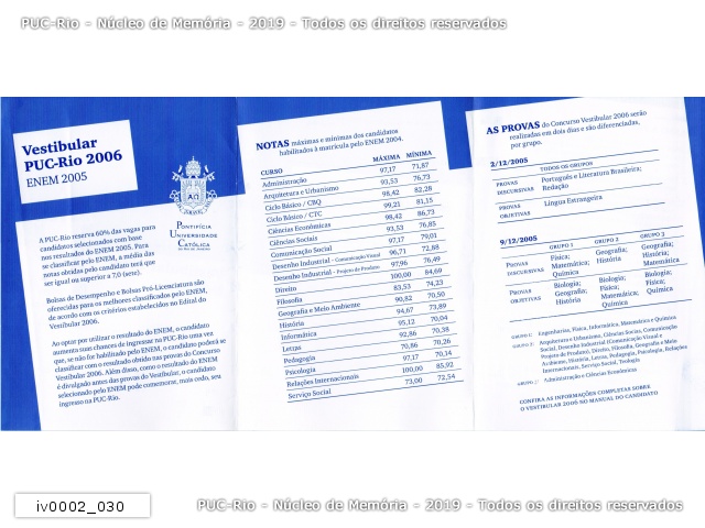 Informações para a inscrição no vestibular PUC-Rio 2006, inclusive com a possibilidade de utilização da nota do ENEM 2005. |