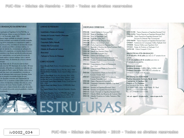 Apresentação do Programa de Pós-graduação em Engenharia Civil na área de Estruturas. Lista das Linhas de Pesquisa, Corpo Docente e Disciplinas Oferecidas. |