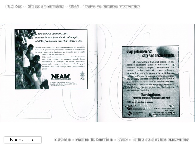 Folder sobre o Núcleo de Criação do Projeto Comunicar. Campanhas produzidas ao longo dos anos. Neam e Observatório Nacional. |