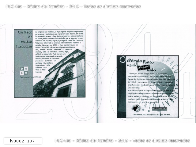 Folder sobre o Núcleo de Criação do Projeto Comunicar. Campanhas produzidas ao longo dos anos. Paço Imperial e Espaço Cultural Sérgio Porto. |