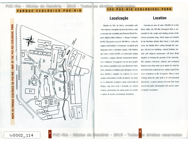 Parque Ecológico da PUC-Rio - Guia de visitantes. Bilíngue. Mapa do campus e Localização na cidade. |