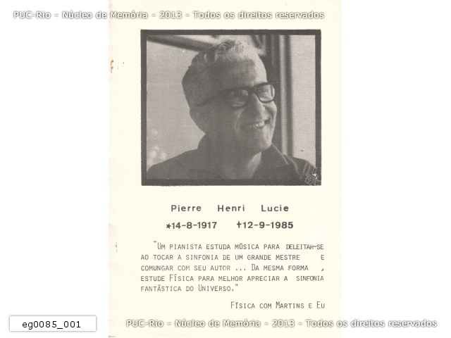 Pierre Henri Lucie: um grande mestre. Texto do prof. A. Luciano L. Videira. |