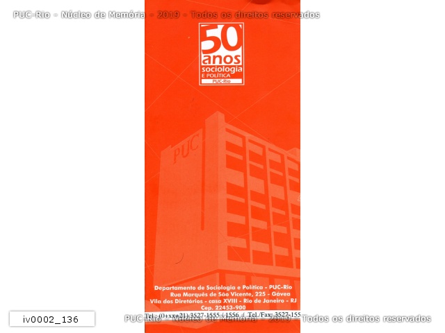 Apresentação do Departamento de Sociologia e Política, que estaria completando 50 do Curso de Sociologia. Contracapa. |