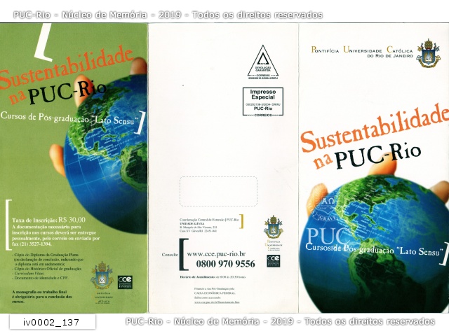 Folheto de divulgação das atividades do Polo Avançado da PUC-Rio em Duque de Caxias. Cursos oferecidos pelos departamentos de Educação, Serviço Social, Matemática, pelo NIMA e pelo PIUES no segundo semestre de 2007. |